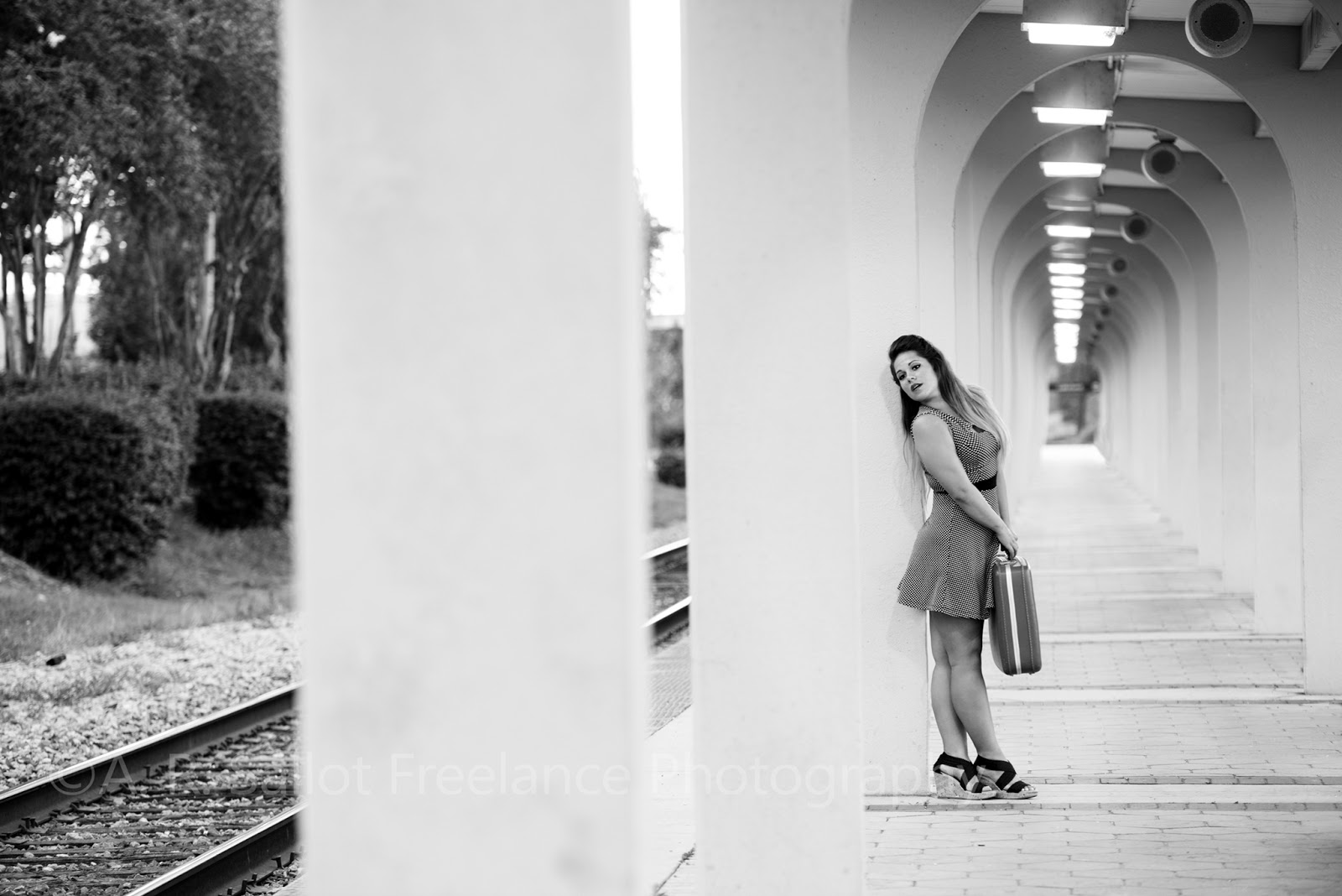 This shoot was downtown. I picked up an old suitcase and we went to the train station. There's a mystery to travel. Excitement and anticipation. I think we captured that. I can't wait for her to come back for our next session together. I hear she may be bringing friends back...